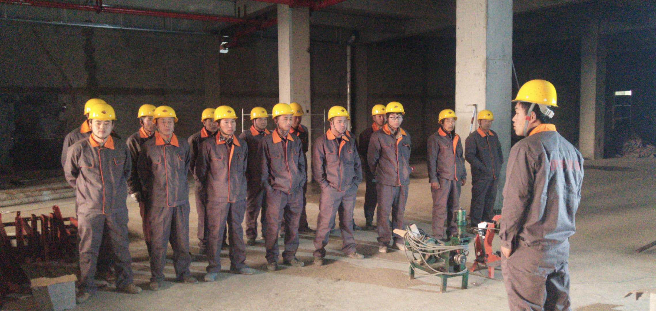 圖為項(xiàng)目班組負(fù)責(zé)人對(duì)施工人員進(jìn)行安全教育